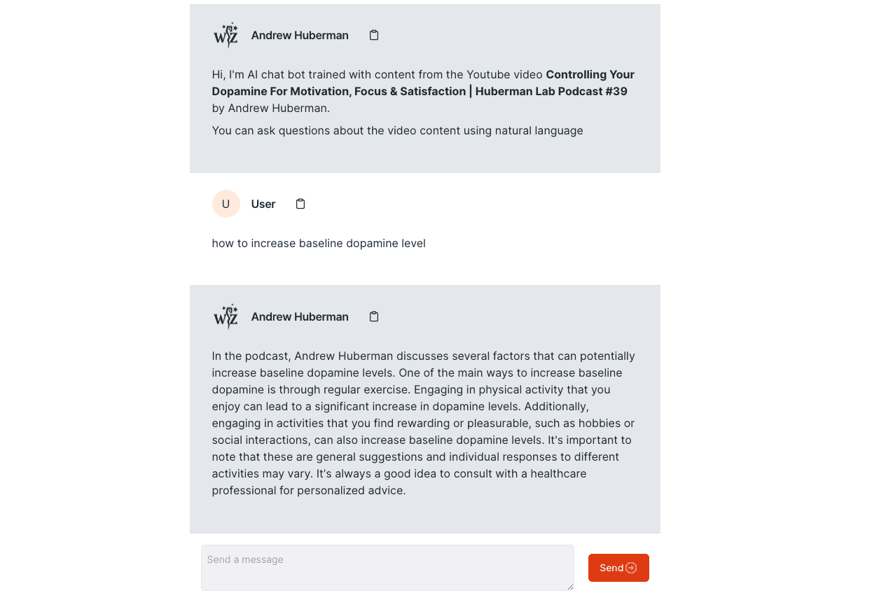 Have specific questions about a video or an entire channel? Ask Video Wiz’s AI chat bot and get precise answers, ensuring you understand topics that matter to you.